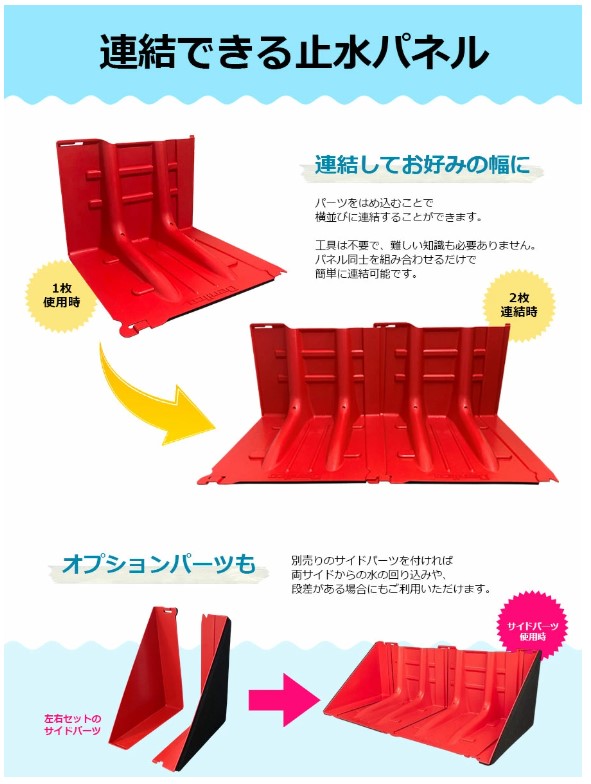 【アルマックス】止水パネルDN50 幅55 高さ52.8 奥行68 止水版 防災 樹脂板 土嚢 土のう 水害対策 ゲリラ豪雨 線状降水帯 連結 連結板 ジョイント 樹脂製止水パネル パネル 連結可能 洪水 雨 豪雨 水難 水害 備え ストップタップ